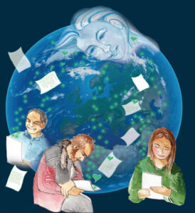 Om uiting te geven aan alles wat ze beleefde begon Zondagskind liefdesbrieven te schrijven. Elke dag schreef ze eentje voor iemand of iets die haar die dag vlinders in haar buik had gegeven. Of het nu een knop was die op knappen stond of een bij die helemaal onder het stuifmeel zat. Zo mooi! Deze brieven liet ze overal achter voor wie ze wilde lezen. In de tien jaar dat ze schreef – er ging geen dag voorbij dat de natuur haar niet inspireerde – raakte ze regelmatig een gevoelige snaar. Haar brieven begonnen geliefd te worden, en steeds meer mensen vroegen of ze een keer met haar mee mochten naar buiten om ‘door haar ogen, oren, neus, mond en handen dat bijzondere van de Aarde te ervaren’. De ontdekkingstochten van Zondagskind waren verslavend en aanstekelijk: steeds meer Groeneweiders werden ook zondagskinderen. Ze straalden, werden fitter, konden hun zorgen ook eens aan de kant zetten, waren hoopvoller, empathischer, socialer, sliepen beter, werden relaxter, gingen automatisch gezonder eten en werden bovenal … ook verliefd. Natuurlijk zagen ze nog steeds wel hun problemen, crisissen en uitdagingen in hun levens. Maar omdat ze elke dag hun levensbatterij weer oplaadden aan Moeder Aarde voelde dat minder zwaar. Alles werd lichter en luchtiger waardoor ze heel daadkrachtig ook andere keuzes in hun leven konden maken.